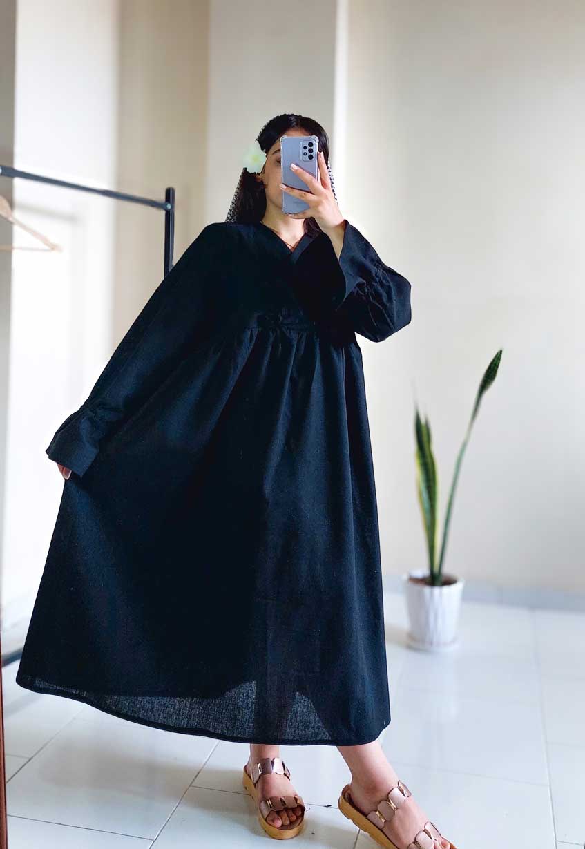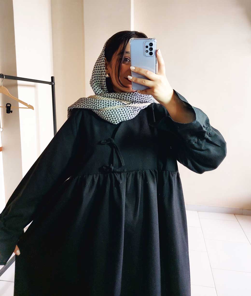 پیراهن بلند مشکی لینن نخ پنبه مزون صبا فرشباف بنام 🖤